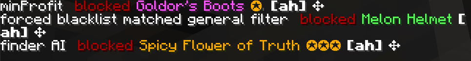 ➡️ You can now specify a custom format for /cofl blocked. Its the same as for flips with an added {12} for the blocked reason. This is how it looks like with /cofl set modblockedformat {12} $4 blocked {2}. As suggested by @phuriii
