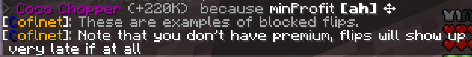 ➡️ Added a debugMode setting. It enables another message for each flip to hopefully find why some flips don’t show up in chat (or at least to find a pattern in which). You can enable it with /cofl set debugmode true @Deleted User