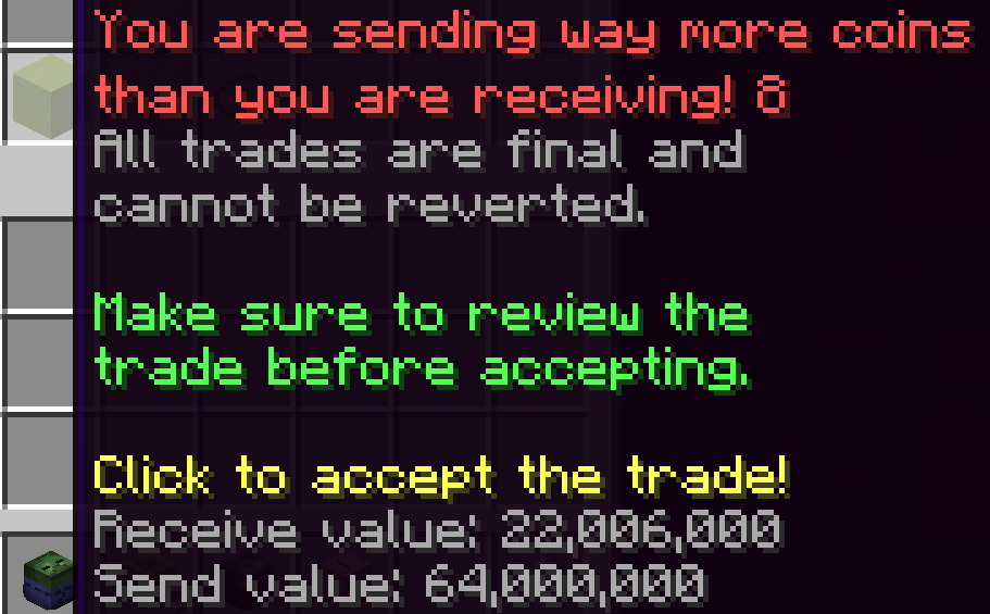 ➡️ Added a warning to trades if you send more than twice the value you are receiving. Hopefully prevents a few instances of someone being scammed.