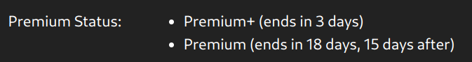 ➡️ Clearified that premium continues after prem+ ended. Also now hiding starter tier if it doesn’t differ in time (starter is included in the higher tiers) This should avoid future confusion.