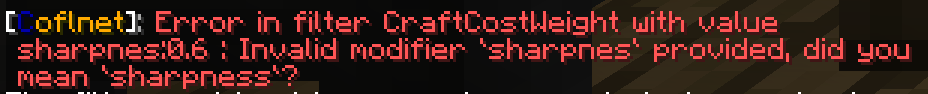 ➡️ The error message for CraftCostWeight now only contains the error message from the filter and no longer all weights. Should allow you to figure out the issue better, as suggested by @yourefired