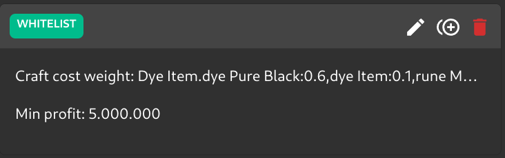 ➡️ The CraftCostWeight now recognizes and applies MinProfitPercentage after the weights are applied. As suggested by @lasagnenfighter. As a reminder, if it doesn’t match the target price isn’t changed.