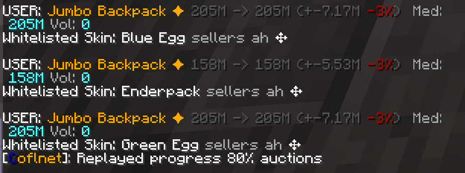 ➡️ Relaxed the Sniper (lbin) finder anti market manipulation on items with very high volume and low volatility. This makes them a bit riskier but I saw many successful flips that were previously not shown.