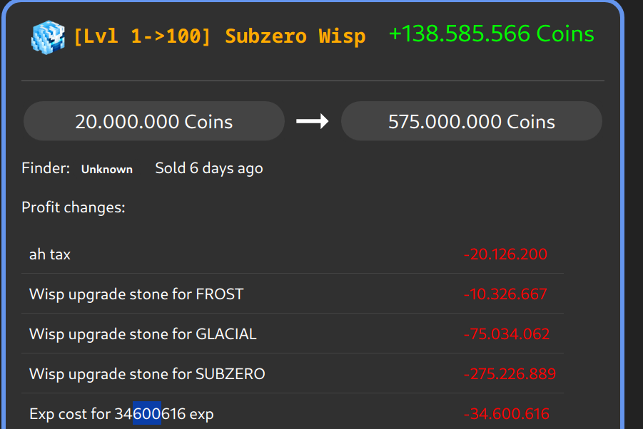 ➡️ Corrected flip-tracking calculation of upgrading Wisp Pet from Uncommon to Legendary. Thanks for the report @lineartime