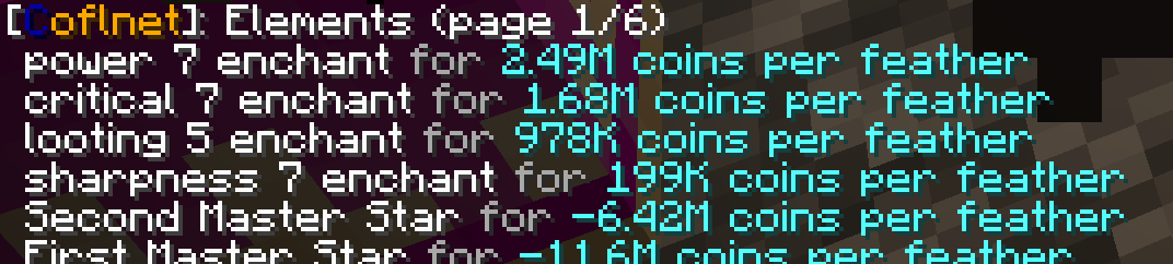 ➡️ Searching with /cofl bazaar <item> will no longer exclude non affordable items below purse like the normal /cofl bazaar command would.