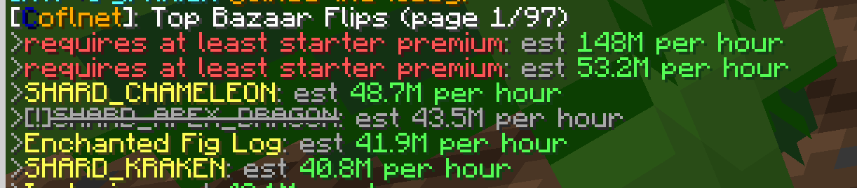 ➡️ Changed /cofl bazaar to require starter premium for the top 2 flips. Thanks for the note @tyson_dino_nugget