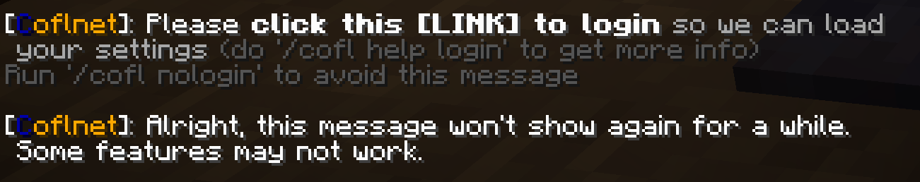 ➡️ Added /cofl nologin in case you generally want to not login you can use that command to disable the default promt. As suggested by @circles1337