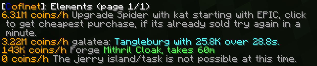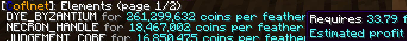 ➡️ Added /cofl ananke command as suggested by @spearmintt. It uses the current price of Ananke Feathers, progress one contributes to RNG meters and the lbin of each item to sort most profitable items to use.