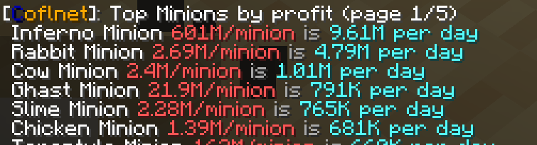 ➡️ Added /cofl minion to calculate highest profit/day as suggested by @thompie__. In its current form its checking uncompacted bazaar sell prices.