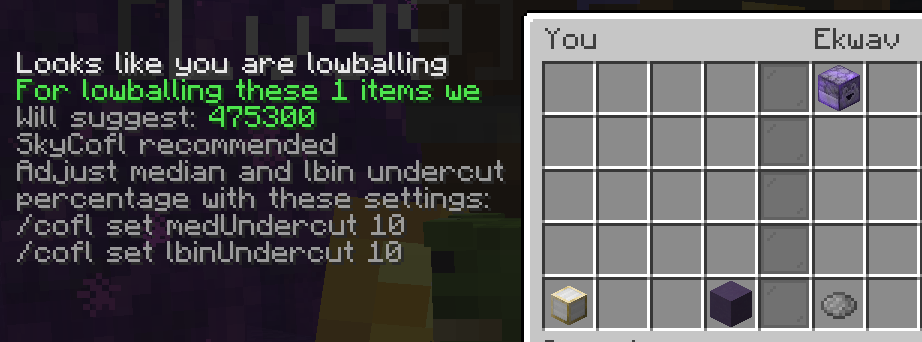 ➡️ Added /cofl lowball it allows finding or being found as a lowballer easier. As a lowballer it checks your filters if you would want an item for a given price or not. As a seller you can see at which price some lowballer would be visiting you to buy the item off of you. This is currently mostly a proof of concept, let me know what you think and if you are missing anything.