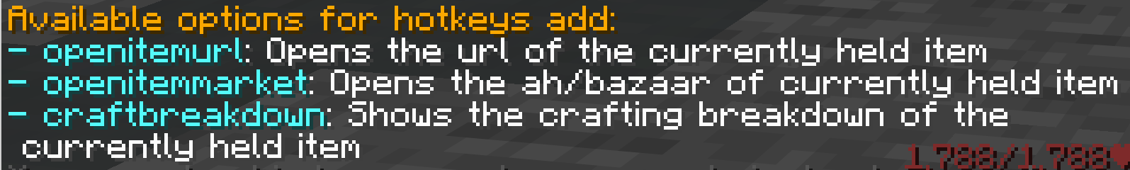 ➡️ Added extra hotkey commands. openitemmarket opens the items ah/bazaar search page. craftbreakdown prints the attribute component cost required to craft a given item. As suggested by @yachtyl