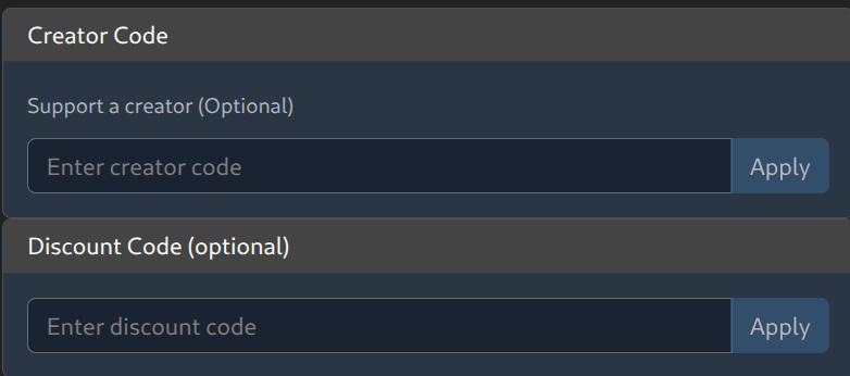 ➡️ Added a separate input for discount codes to avoid confusion between creator and discount codes which previously had inputs on separate pages.